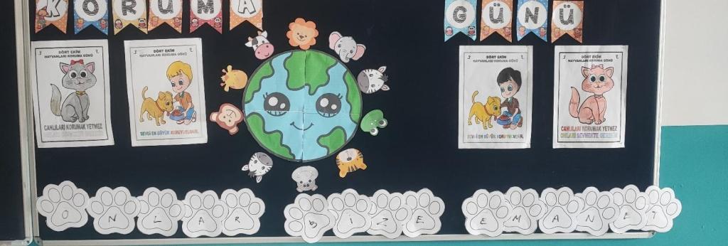 Hayvanları korumak ve onların da sahip olduğu haklara yönelik farkındalık yaratmak için her yıl 4 Ekim'de bütün dünyada Hayvanları Koruma Günü kutlanır. Kutlamaların amacı evlerimizdeki, sokaklarımızdaki ve doğal yaşam alanlarındaki hayvanların yaşam koşullarını iyileştirmek, onları korumak ve onların bizler için önemini herkese benimsetmektir.Okullarımızda hayvan sevgisini öğrencilerimizde artırmak, onların bize emanet olduğunu hatırlatmak amacıyla okul bahçemize sevimli dostlarımız için Çevre Koruma Kulübü öğrencilerinin hazırlamış oldukları kulübeleri yerleştirdik, ve öğrencilerle birlikte pano hazırladık . Dünya hepimizin hayatı birlikte paylaşıyoruz.