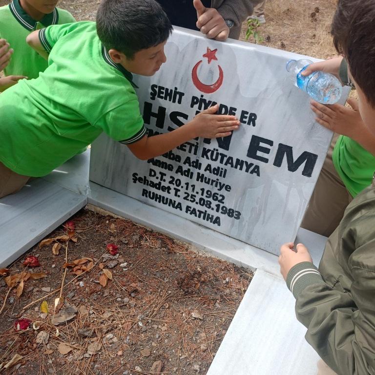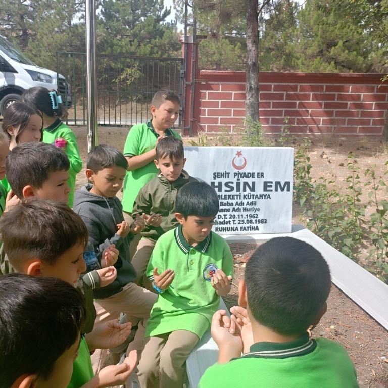Okulumuz 5/A sınıfı öğrencileri ile DKAB öğretmenimiz Ahmet BURAN rehberliğinde Şehit Piyade Er Tahsin EM'in kabrini ziyaret ettik. Ahmet hocamızın Yasin-i Şerif okuduğu ziyaretimizi huşu içinde tamamladık. Şehidimize Allah'tan rahmet diliyoruz. Ruhu şad olsun.